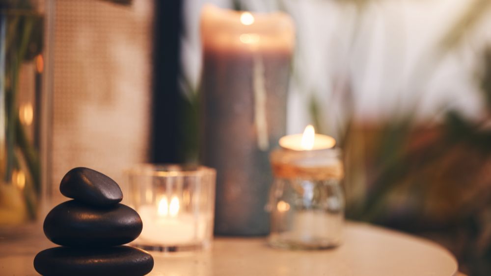 Heated stones relieve deep muscle tension, improving circulation and relaxation.